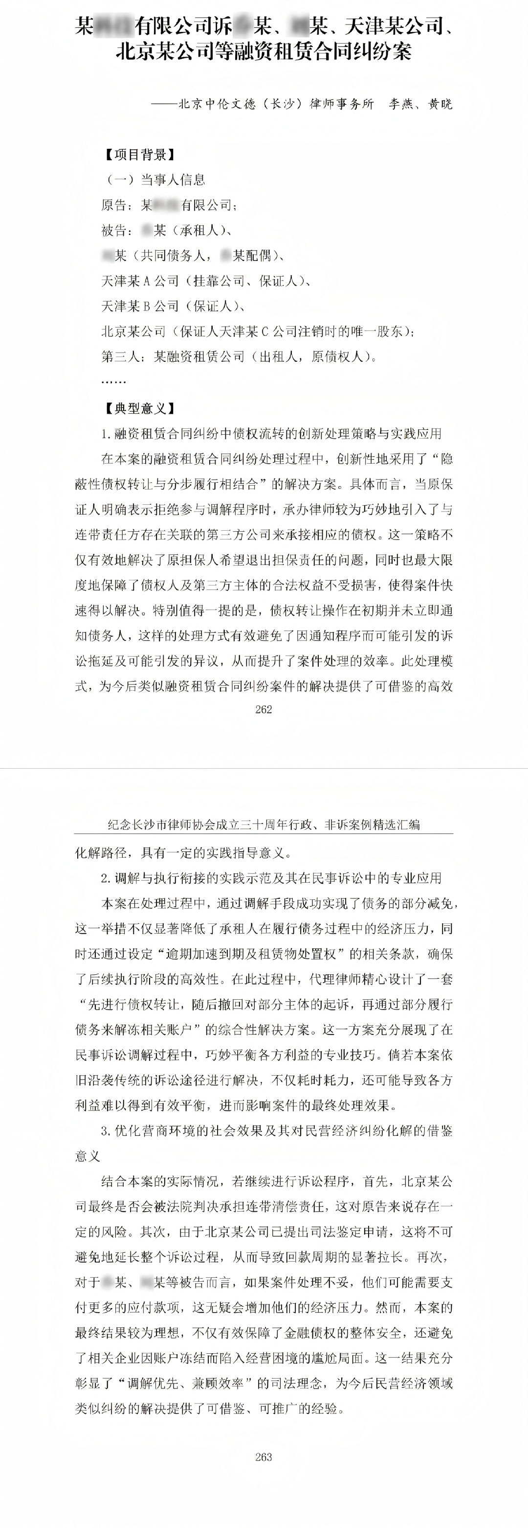 12月23日,在纪念长沙市律师协会成立三十周年经典案例汇编中,北京中伦文德(长沙)律师事务所谢静黎律师承办的《X某涉嫌帮助信息网络犯罪活动罪存疑不起诉案》,以及李燕、黄晓律师联合代理的《某XX有限公司诉X某、X某、天津某公司、北京某公司等融资租赁合同纠纷案》,经过长沙市律协的严格筛选与细致审查,分别入选《刑事案例精选汇编(二)》和《行政、非诉案例精选汇编(三)》。