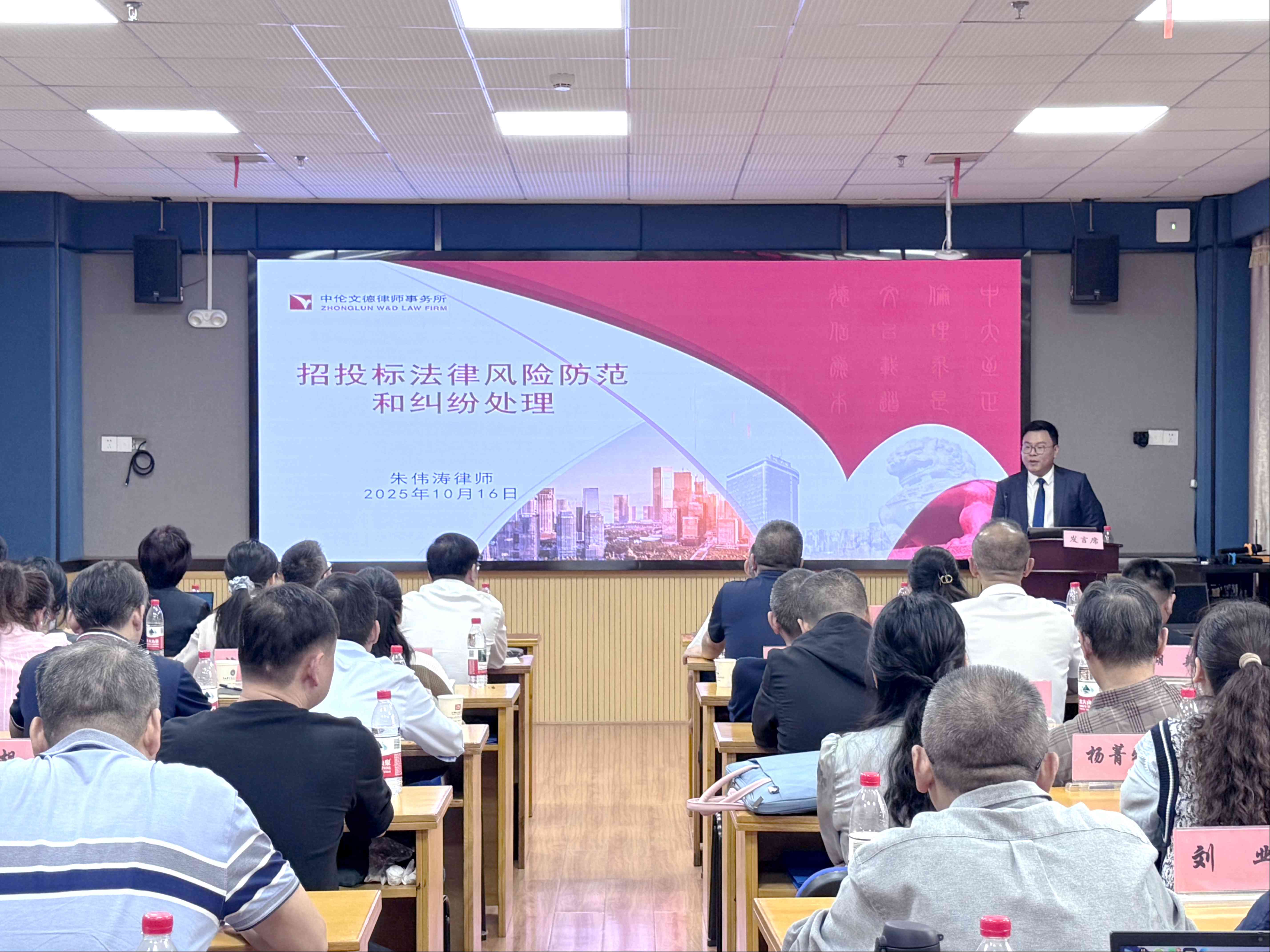 10月16日,北京中伦文德(长沙)律师事务所合伙人、管委会副主任朱伟涛受中国电信湖南公司邀请,为全省各地州市分公司及直属单位参加中国电信湖南公司2025年法律合规信访培训班的学员们带来了一场专业性强、实用性高的专题讲座。此次讲座以《招投标法律风险防范和纠纷处理》为主题,紧扣实务要点,旨在为企业员工提供极具针对性的专业指导,切实助力解决招投标实际问题的能力。