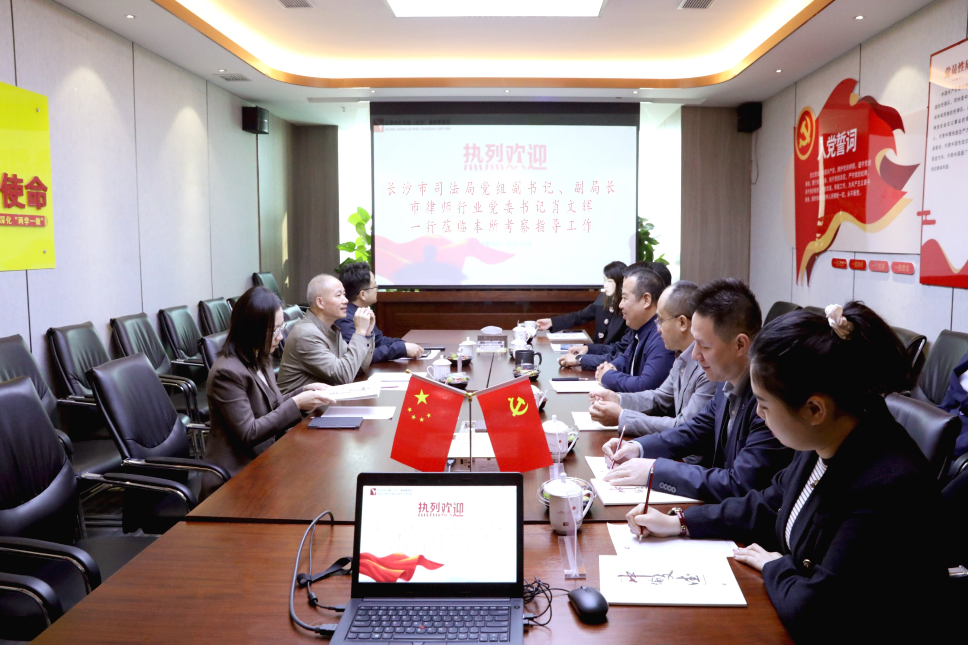 10月28日上午,长沙市司法局党组副书记、副局长、市律师行业党委书记肖文辉,专职副书记沈银洁,律师工作处处长、市律师行业党委委员叶进一行到北京中伦文德(长沙)律师事务所调研指导,律所党支部书记、主任田学军率管委会成员接待并主持座谈会。