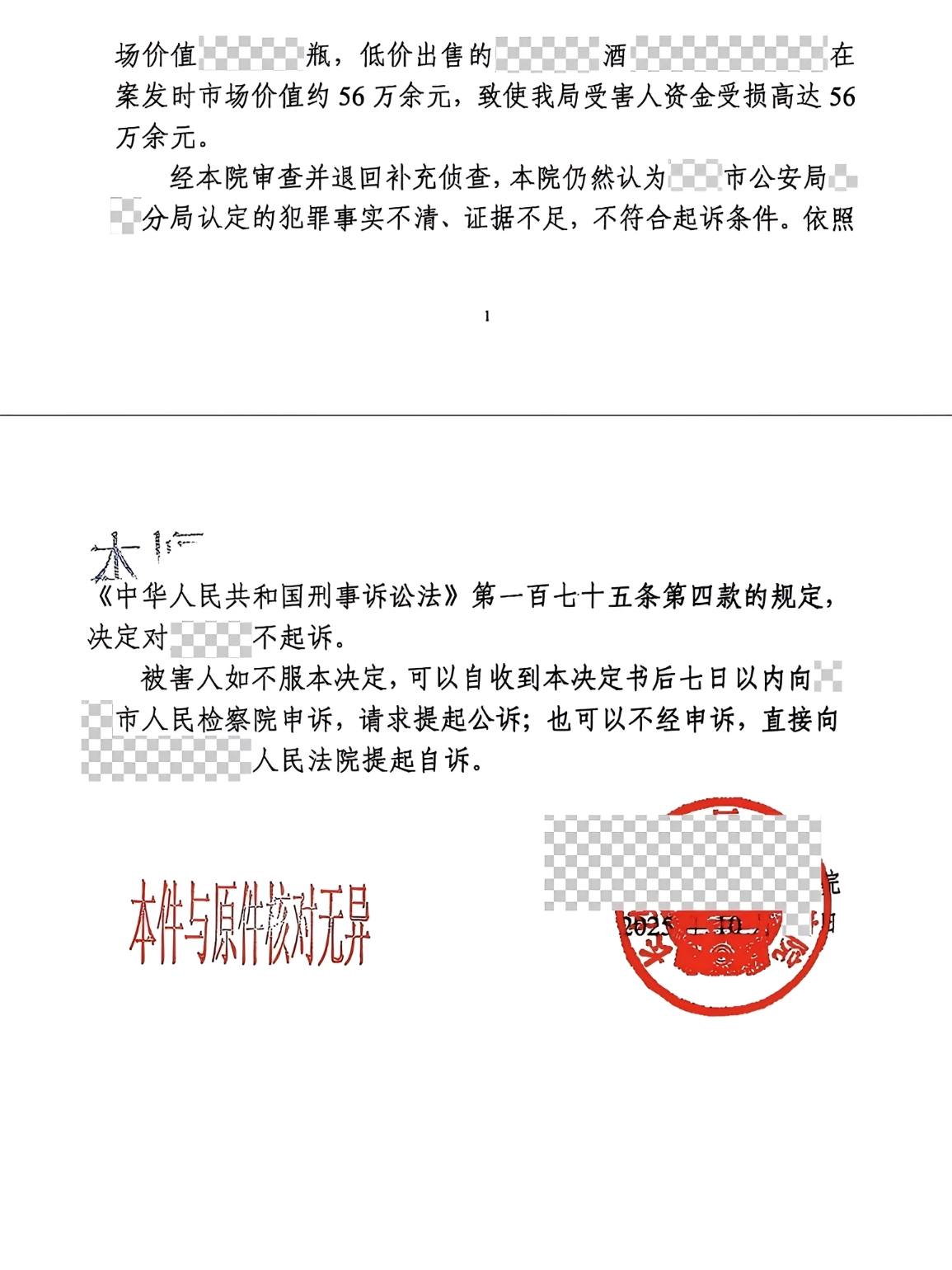 资讯|存疑不起诉——刑民交叉精准破局,刑事业务团队王涛、谢静黎律师成功办结56万元盗窃案