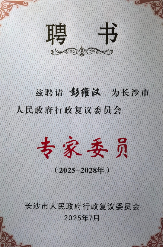 为深化行政复议体制改革、提升法治政府建设水平,长沙市人民政府近日正式聘任北京中伦文德(长沙)律师事务所党支部副书记、管委会副主任彭维汉律师为长沙市人民政府行政复议委员会专家委员,聘期自2025年至2028年。此次聘任既是对彭维汉律师在行政法领域卓越专业能力的权威认可,也彰显了中伦文德·长沙在政府法律服务领域的综合实力。