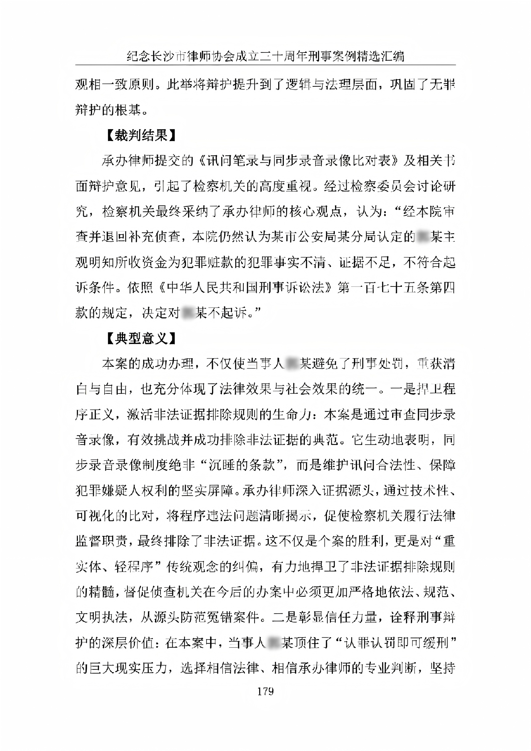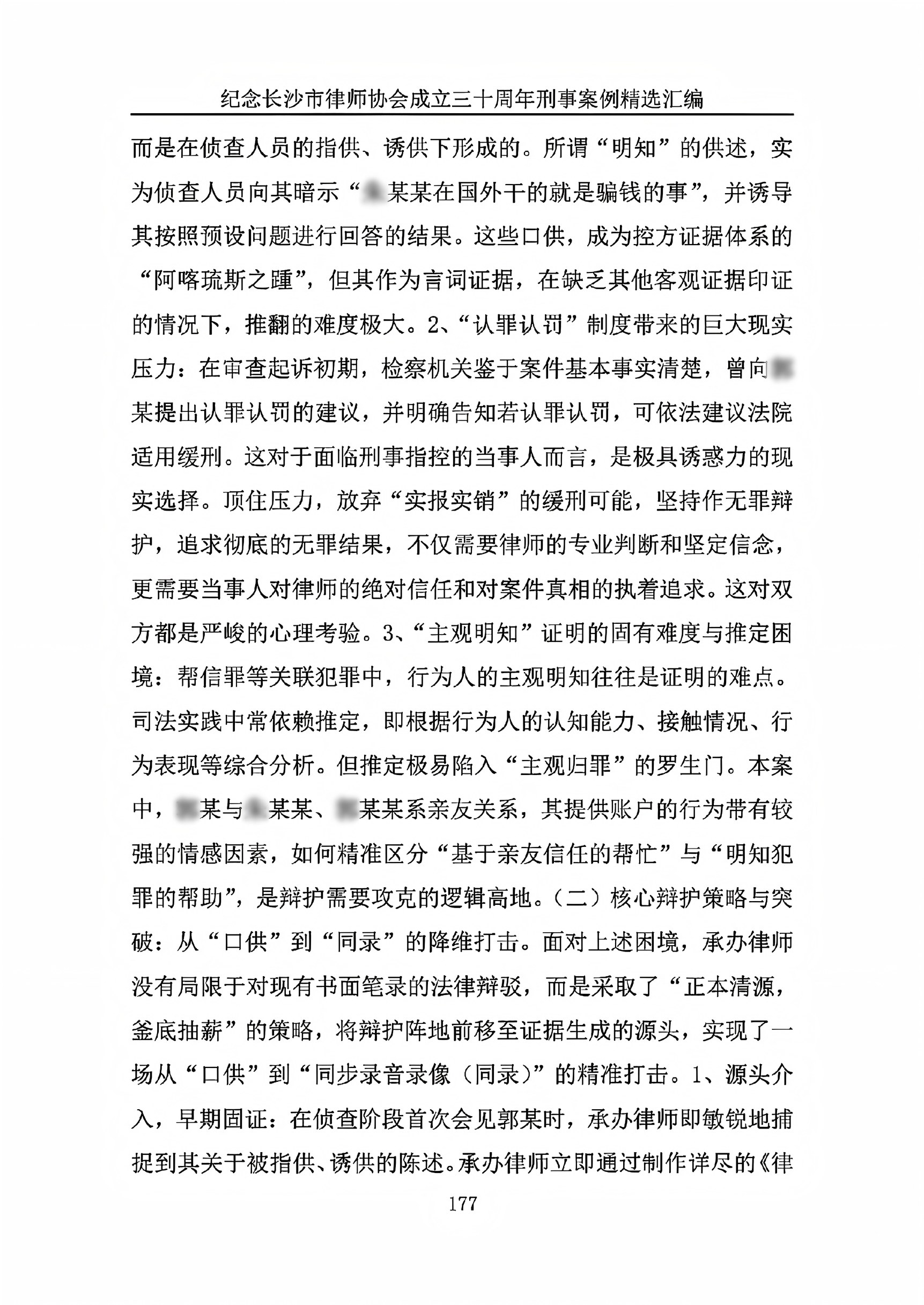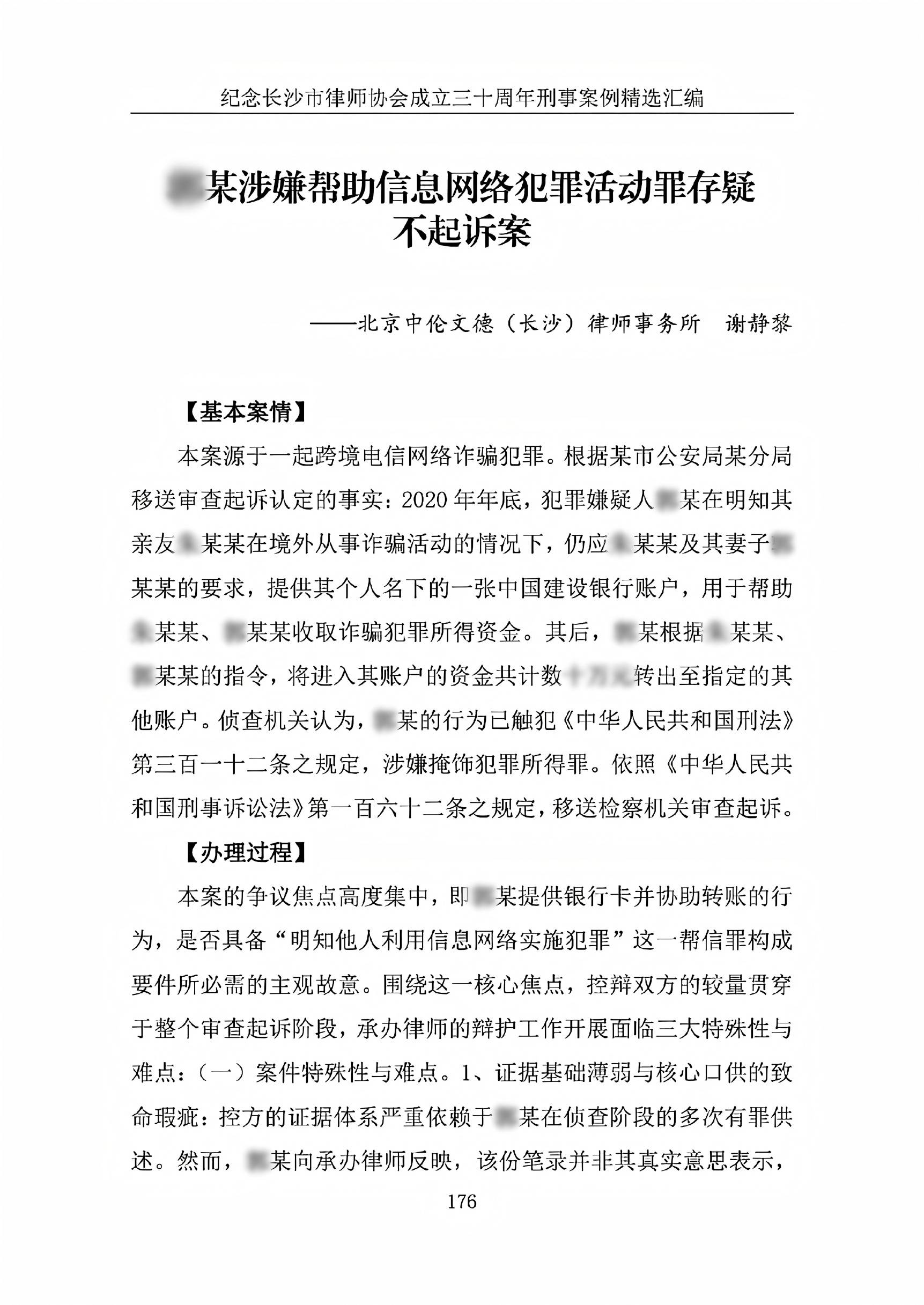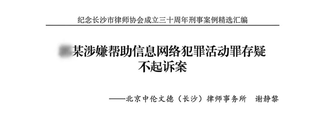 12月23日,在纪念长沙市律师协会成立三十周年经典案例汇编中,北京中伦文德(长沙)律师事务所谢静黎律师承办的《X某涉嫌帮助信息网络犯罪活动罪存疑不起诉案》,以及李燕、黄晓律师联合代理的《某XX有限公司诉X某、X某、天津某公司、北京某公司等融资租赁合同纠纷案》,经过长沙市律协的严格筛选与细致审查,分别入选《刑事案例精选汇编(二)》和《行政、非诉案例精选汇编(三)》。